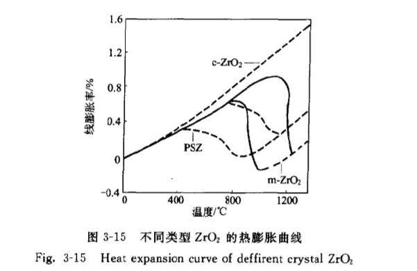 單斜氧化鋯的熱膨脹系數(shù)小,其膨脹有顯著的各向異性?且存在相變問(wèn)題。立方氧化的熱膨脹系數(shù)最大,并且隨溫度的增加而增加,因而由它構(gòu)成的材料抗熱震性較差。