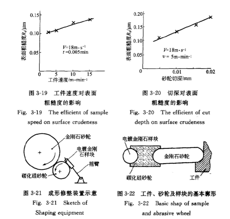 精密時參數:工件速度3~5mmin-1,砂輪切深O0.005~0.010mm,砂輪速度為18ms1。這樣,試件的表面粗糙度R值可控制在0.16pm以內。成形磨削用樹脂結合劑金剛石砂輪。